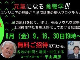 【講座】ベランダでも出来る土壌微生物活性化農業の講座ご案内【Ⅰ】生命の原料を知る(食物連鎖=食養学)1,身体の構造と細胞の組込プログラム・・(120 分) 2,微生物活性による物質変換を有効活用・(120 分) … -
