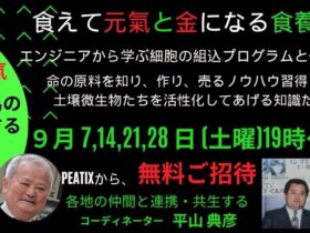 10月の『食養学』勉強会の案内【生命の原料を知り・作り・売り・未病の共生を創造】◆基本の氣=身体システムを知る基礎編地球生物の誕生から、その『命の原料』を生成合成し、植物に託してきた『土壌微生物の多様性』を活性値として可… -